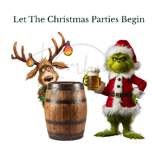 Let The Christmas Parties Begin! - Grinch & his dog with a drink in his hand - Christmas Designs
