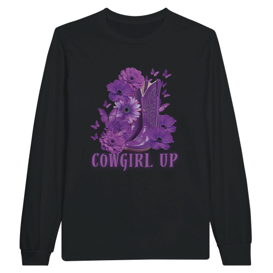 Cowgirl Up Purple Long Sleeve T-shirt – Stylish Cowboy Boots Design