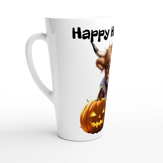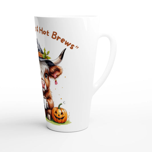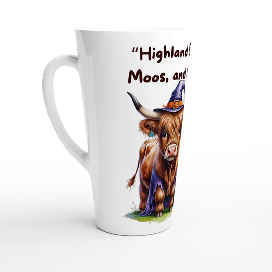 Highland Boos, Fluffy Moos, and Coffee Too - HalloweenWhite Latte Mug – 17oz Ceramic Coffee Cup