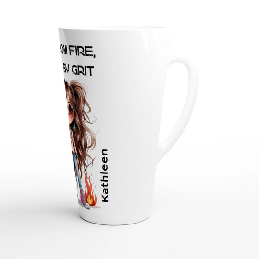 Built By Fire, Fueled By Grit - White Latte Mug – Personalized 17oz Ceramic Coffee Cup