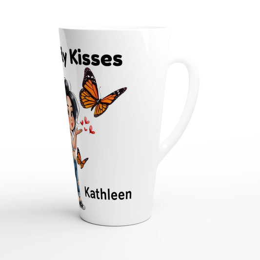 Personalized Butterfly Kisses Mug - White Latte 17oz Ceramic Mug – Glossy Dishwasher & Microwave Safe Coffee Cup