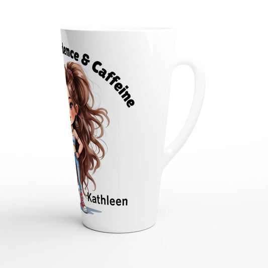 Fueled By Confidence & Caffiene - White Latte Mug – Personalized 17oz Ceramic Coffee Cup
