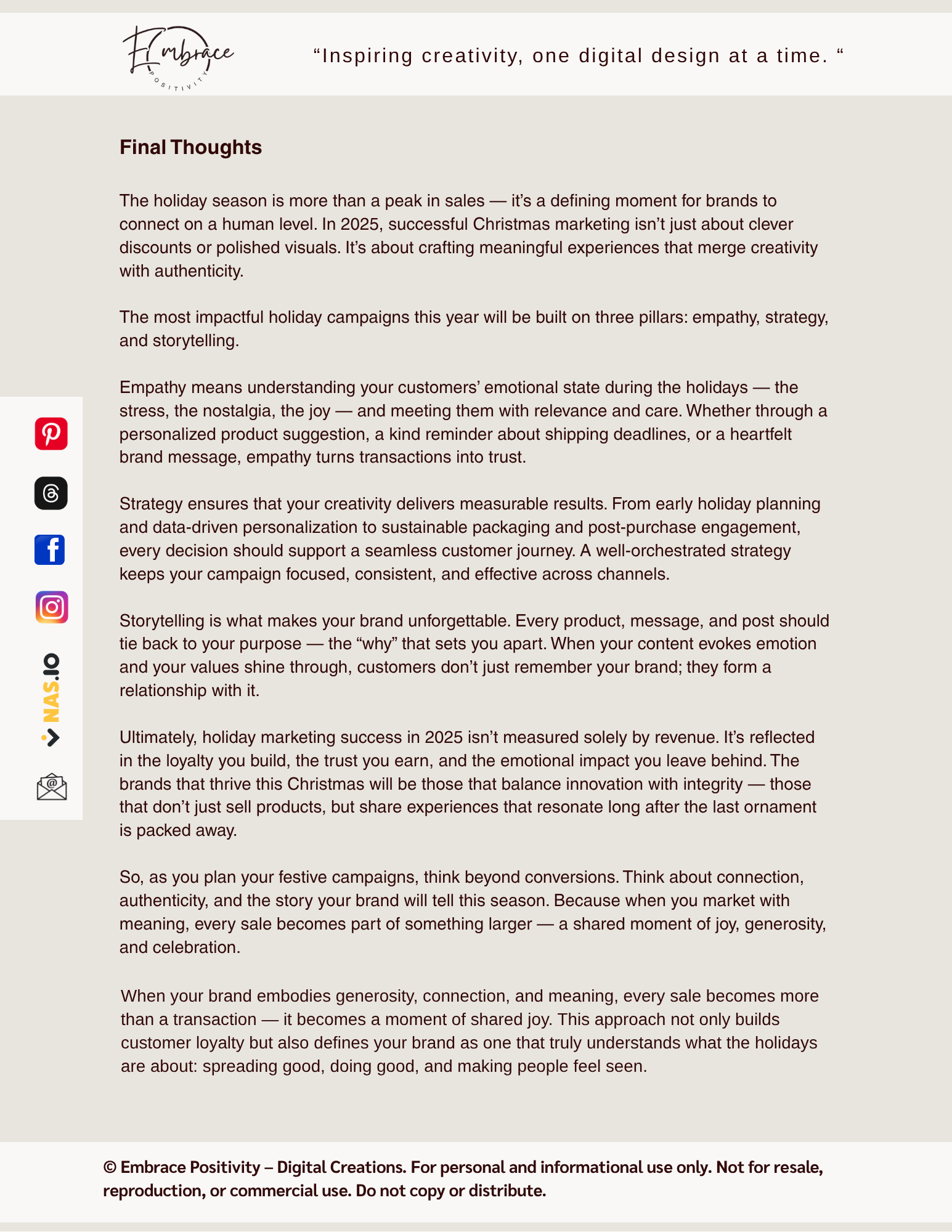 When you market with sincerity and generosity, you turn customers into advocates — people who remember your brand long after the season ends.