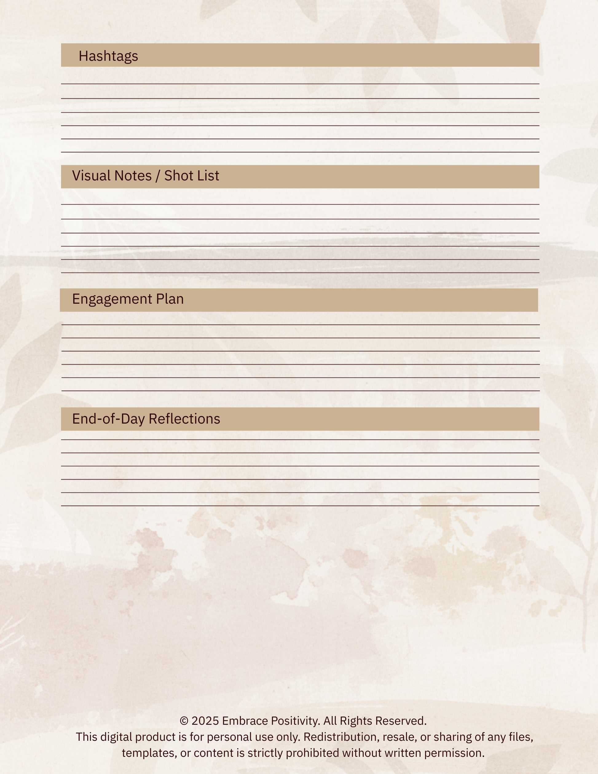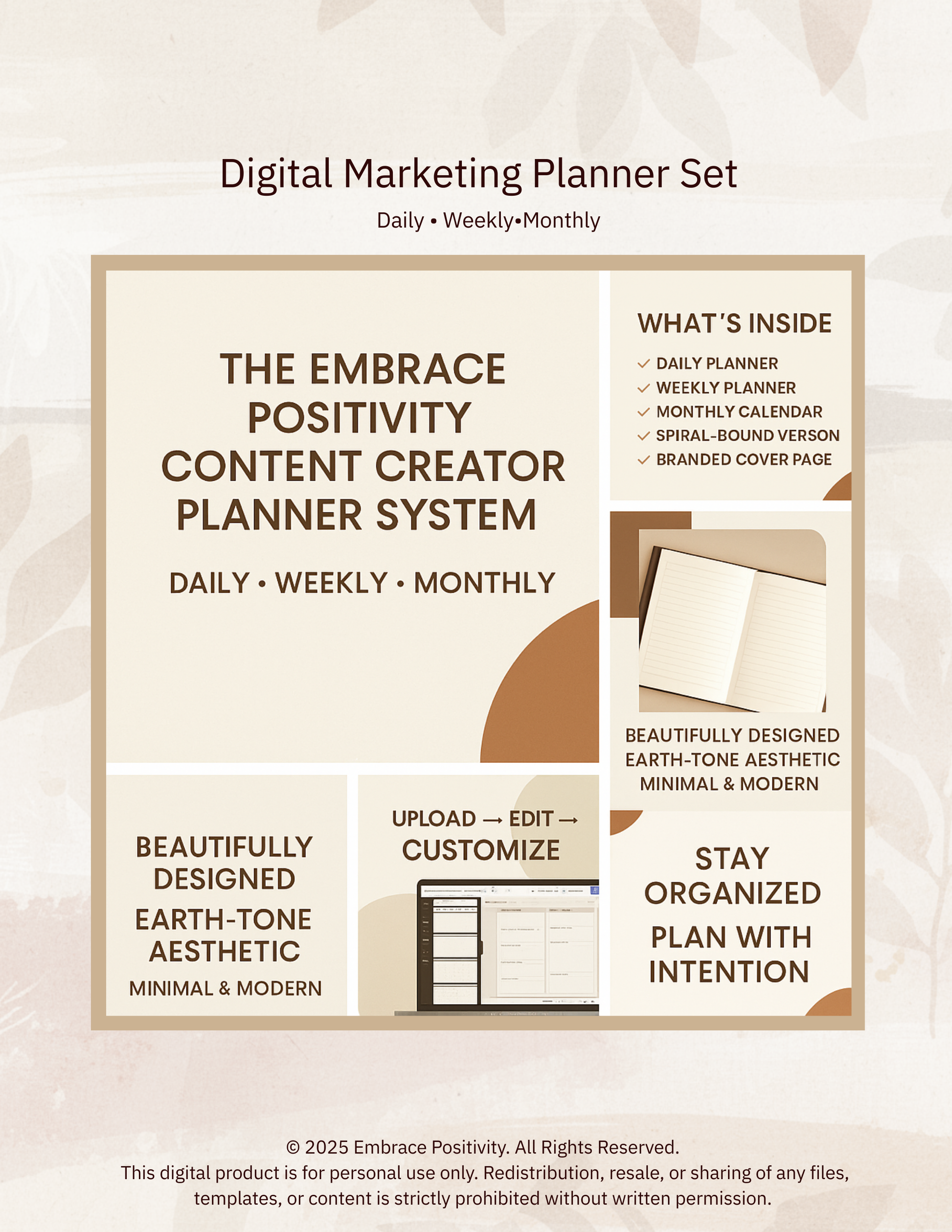 The Embrace Positivity Content Creator Planner - Digital Marketing Content Planner Set — Daily, Weekly & Monthly | Canva-Ready